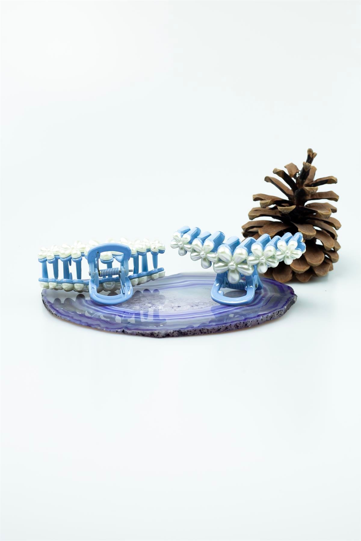 Mavi Renk İncili Çiçekli Tasarım Kıskaçlı Toka 4889