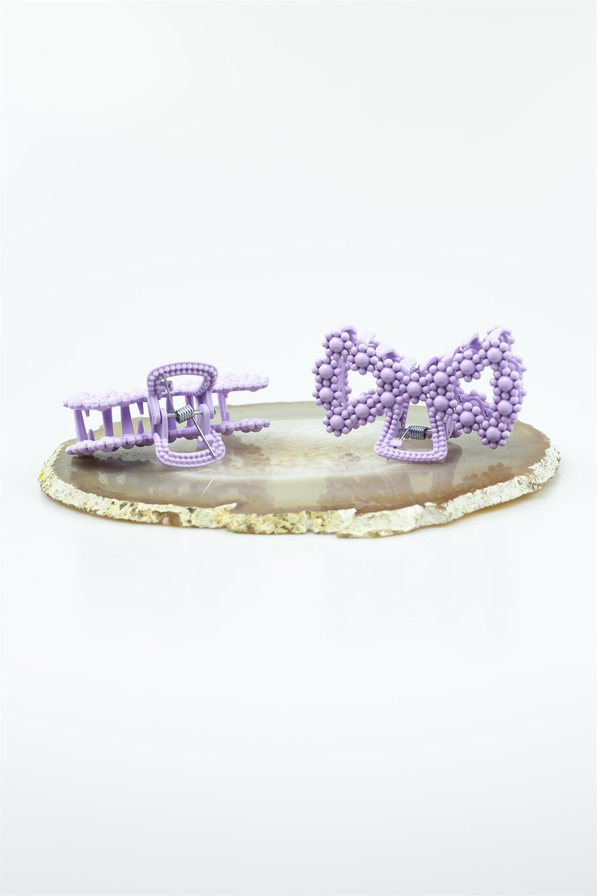 Mor Renk Fiyonk Tasarım Kıskaçlı Toka 4884